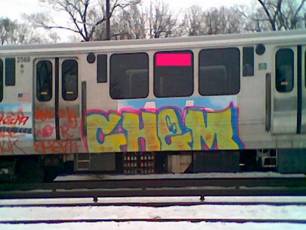 Like many other graffiti artists he does not agree with Mayor Daley's plan to stop graffiti. He has yet to be caught bombing, but has been arrested for trespassing, possession of spray cans, and retail theft. "If I am not able to buy my paint, then I'll just take it from them." But he agrees that some tagging should be eliminated; such as the gang tagging which has given graffiti artists a bad rep. "The main difference between us and them is that we respect. We know where to write and never tag on top of someone else's work. They tag to mark territory and disrespect everyone's art work. We do it for the thrill." Many people dismiss tagging as gang banging and don't take the time to look at the art behind it. Chem uses graffiti as his coping method. "I could be out there like everyone else getting shot of colors and streets that don't belong to me, but I prefer to leave my mark. I want people to know I'm out there."