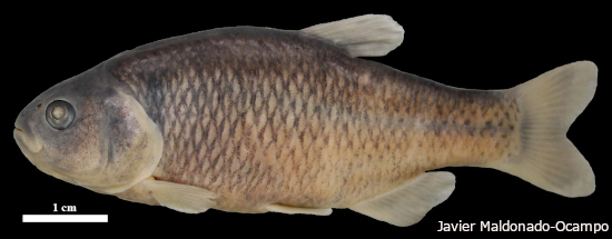 | ECOLOGY: Occurs at a very high elevation lagoon above 3500m where the water temperature is typically between 10 and 17 C. It is worth noting that this is higher elevation than all other native fishes in western Ecuador except species of the Andean catfish genus Astroblepus. Seems to occur in shallow parts of the lagoon that are rich in vegetation where it feeds primarily on small invertebrates, especially cladocerans in the genus Bosmina and chironomids (Insecta, Diptera) (Herrera-Madrid et al., 2020). Valdiviezo-Rivera et al. (2016) found that females between 36.7 and 63.9 mm TL had had an average of 356 eggs (range: 75-716) in their ovaries. |