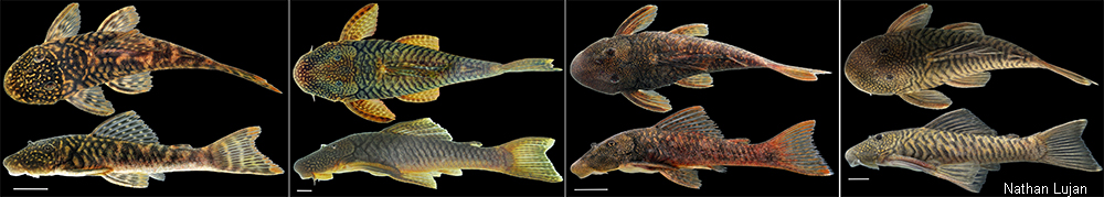 | ECOLOGY: Since this is a newly described species, there is little known about its specific ecology. Like other loricariids, it is likely a benthic species that spends its time attached to rocks or other substrate and feeds on algae. Lujan et al. (2015c) indicate that it occurs in coastal mountain streams typically between 100 and 650 m above sea level. |