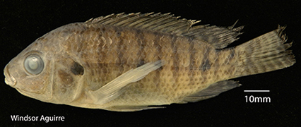 | DISTINGUISHING FEATURES: Can be distinguished from native cichlids by the following combination of characters: Tilapia have three spines in the anal fin whereas Mesoheros has four or more spines, and tilapia have very fine, small teeth while Andinoacara have larger conical teeth (Jimenez et al., 2015). Tilapia also have several broad vertical stripes on the caudal fin, which are absent in Mesoheros and Andinoacara. |
