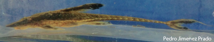 | DISTINGUISHING FEATURES: Species in this genus can be easily distinguished from most other loricariids by their very elongate bodies and the filaments extending from the fins in adults. They can be distinguished from Rineloricaria, which also has a somewhat elongate body, by having a much longer snout and differences in their color patterns. Species in the genus Sturisomatichthys have a dark band of pigment extending from the snout along the back extending posteriorly through part or the entirety of the abdominal region and dark pigment on the pectoral and dorsal fins, while the coloration is much more irregular forming a blotched pattern in Rineloricaria. Sturisomatichthys frenatus differs from its congener S. panamense because its predorsal region fits three or less times in its standard length, while this distance fits 3.3 times or more in S. panamense (Jimenez Prado et al., 2015). |