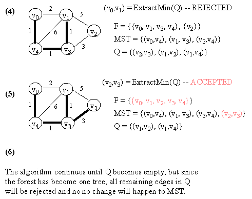 5. (u, v) <- ExtractMin(Q) // Q is modified
