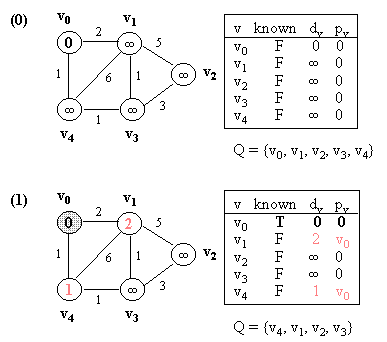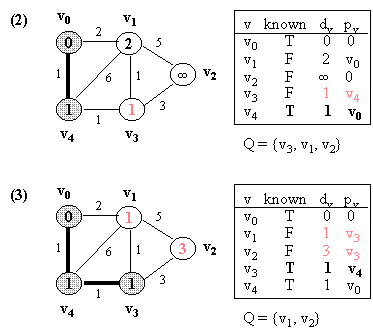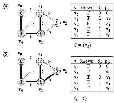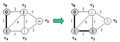 Example (NOTE: v0 is the source vertex, and d[i] for each vertex i is also indicated in its circle):