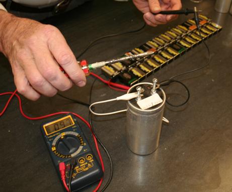 Tom hooked up 25-30 batteries and charged the capacitors (being VERY