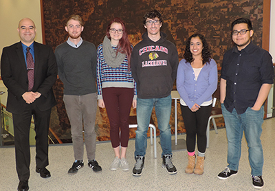 Winter, 2015. Front row, from Left: Daniel Reyes, Katie Carlson, Marissa Locke, Alex Jagla, and Windsor Aguirre.