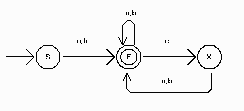 Grammar for this FSA is: S -> a F | b F F -> a F | b F | c X | l X -> a F | b F
