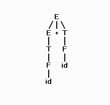 Grammar E2: E -> E + T | T (rules 1 and 2 for E) T -> T * F | F (rules 3 and 4 for T) F -> id | ( E ) (rules 5 and 6 for F)